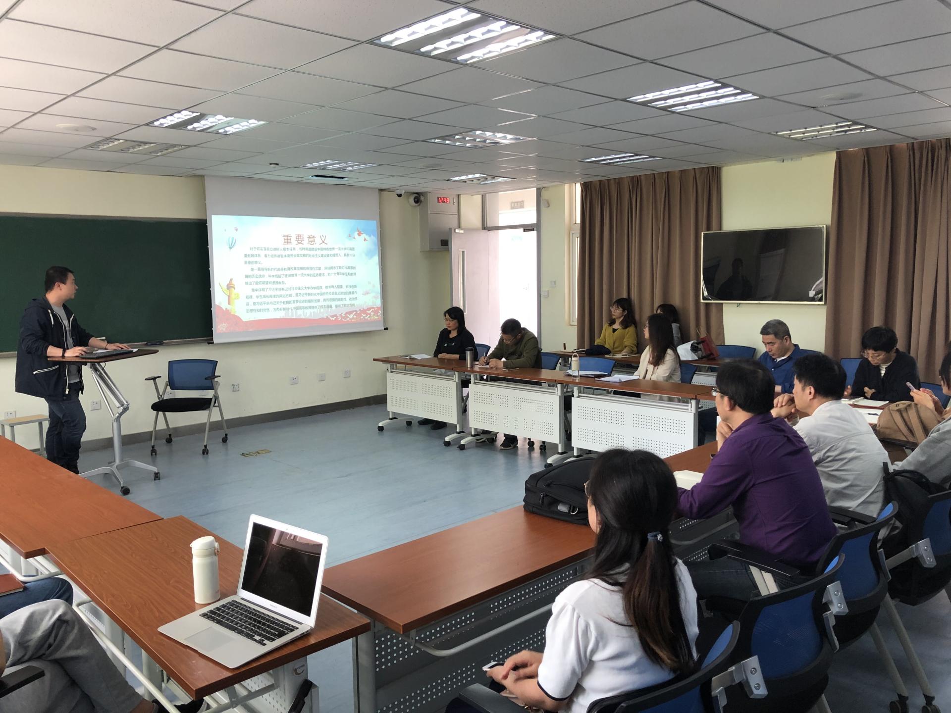 5月17日下午,受太阳成集团tyc122ccvip教工二支部邀请,院党委副书记孙家文在厚学楼308室给支部全体党员上了一次生动的党课。党课就习近平总书记在清华大学考察时的重要讲话进行了宣讲教育。