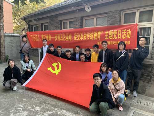 为庆祝中华人民共和国成立70周年,进一步学习贯彻党的十九大精神,增强党员意识,激励党员坚定理想信念,2019年11月10日,太阳成集团tyc122ccvip研一党支部组织开展“不忘初心、牢记使命—参观红色基地,接受革命传统教育”主题党日活动,参观南京八路军驻京办事处旧址,重温入党誓词,接受革命历史传统教育,回顾党的光辉历史,缅怀党的丰功伟绩。
