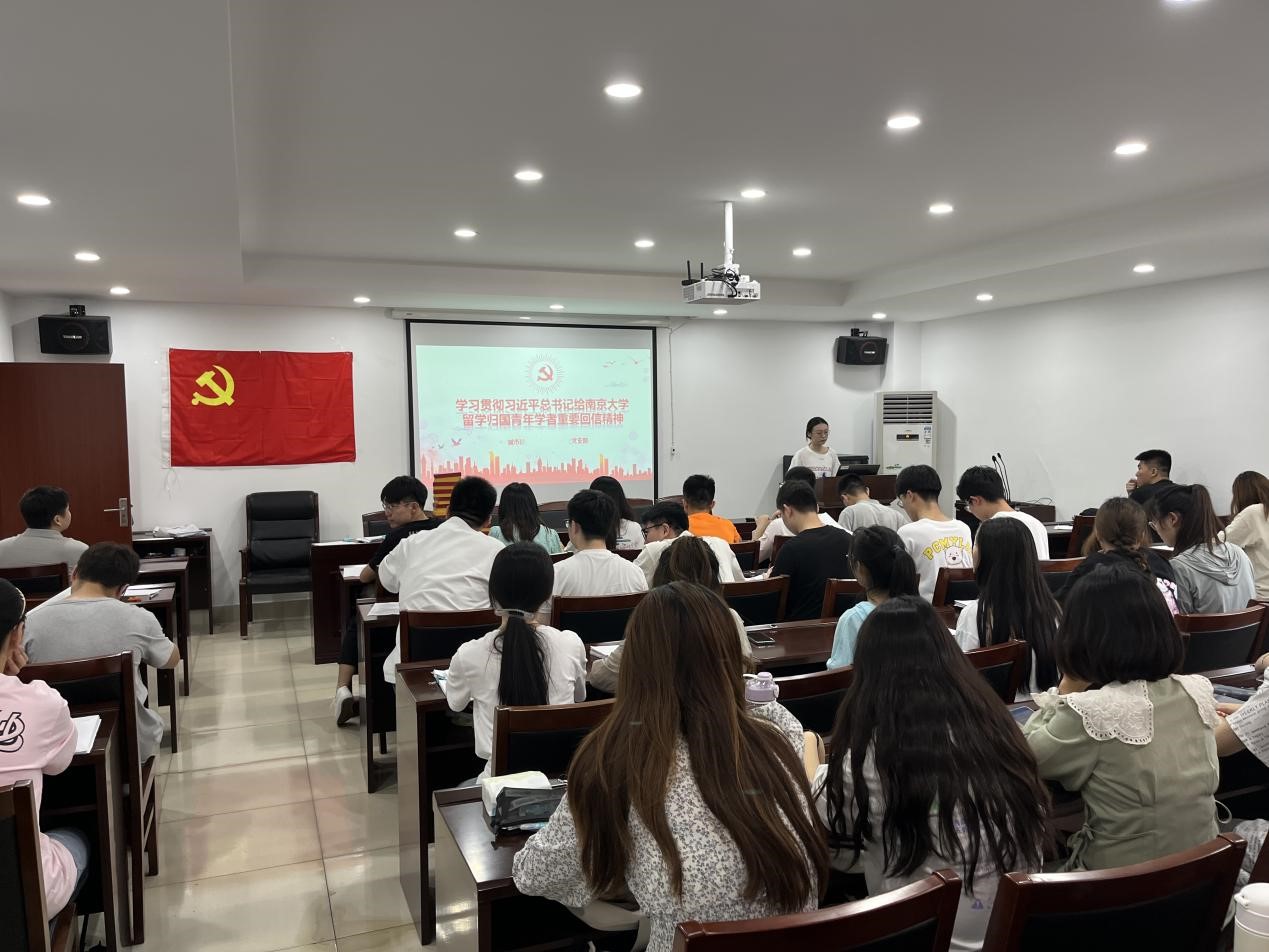 首先,谢雨伶带领全体党员认真学习《习近平总书记给南京大学留学归国青年学者重要回信》,激励支部党员深刻把握报效国家、服务人民的核心要义,在加强自身思想政治上更下功夫,争当表率。接着谢雨伶就此篇回信,带领支部党员将习近平总书记重要讲话精神贯通起来,鼓励党员把思想和行动统一起来,并组织党员思考本次文件的基本精神和核心要义。