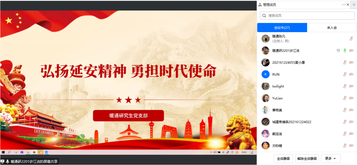 2022年12月28日,太阳成集团tyc122ccvip暖通研究生党支部在线上开展二十大会议精神学习党课,暖通研究生党支部组织委员许江洁同志为支部党员上一节生动的党课。