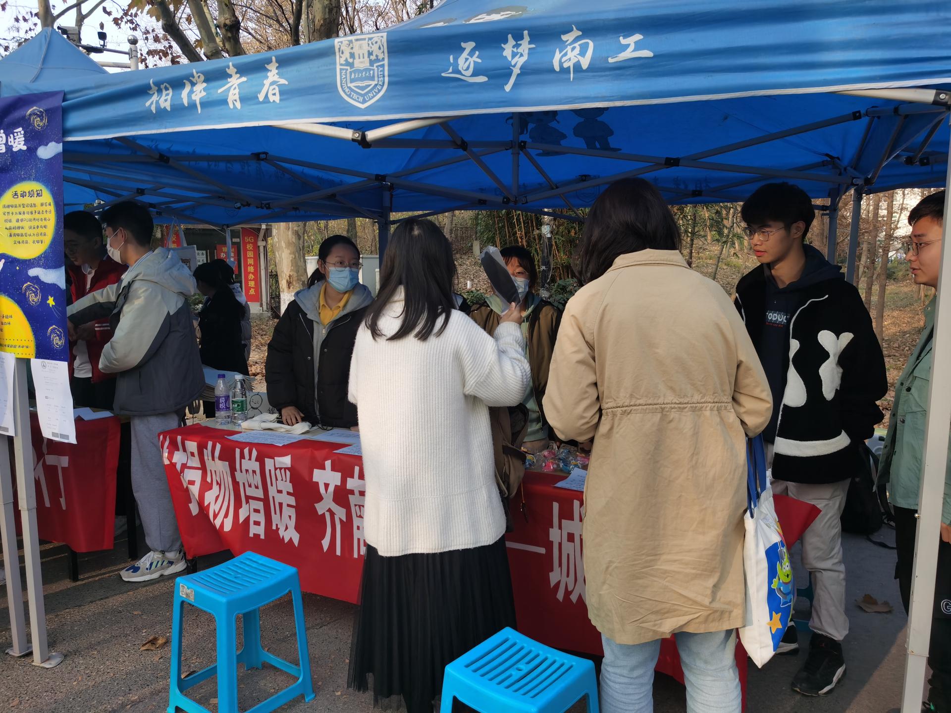 2021年12月10日下午,太阳成集团tyc122ccvip在千亿太阳成集团tyc122ccvip象山花坛附近举办了“捐物赠暖,奉献爱心”活动。本活动面向全校同学开展,主要是为千亿太阳成集团tyc122ccvip贫困生募集爱心物资,为同学们在寒冷的冬天带来一丝温暖。