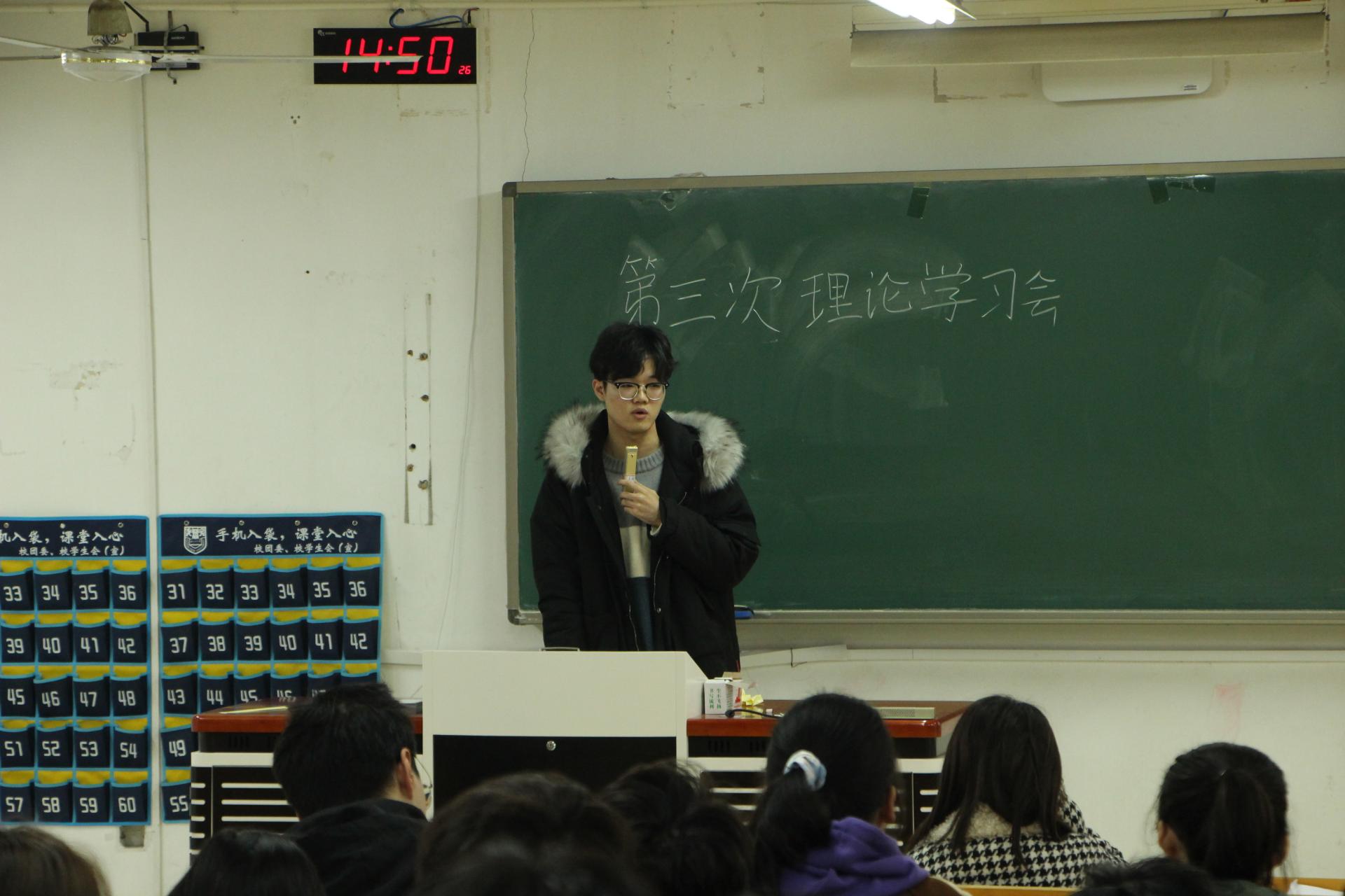 会议伊始,张艺泽同学带领同学们理解了《中国共产党第十九届中央委员会第五次全体会议公报》的主要精神,并结合实际学习生活,提出了队伍学习要勤思以及老员工在公共服务方面所能提供的帮助进行了进一步的思考与阐释。随后,吉睦昇同学就《中共中央关于制定国民经济和社会发展第十四个五年规划和二〇三五年远景目标的建议》,结合12月13日为国家公祭日的现实认知,提出了对于老员工思想文化程度提高的美好希冀。接着,郁嘉雯同学和张皎皎同学通过《向第二个百年奋斗目标进军的行动指南》对吉睦昇同学的发言进行了进一步解读与补充。另外,张皎皎同学还对《中华全国员工联合会章程》进行了一定的阐析。最后,禚欣雅同学向同学们详细介绍了员工会的成员考核机制。本次理论学习会在同学们完成对上次理论学习会的测试后圆满结束。
