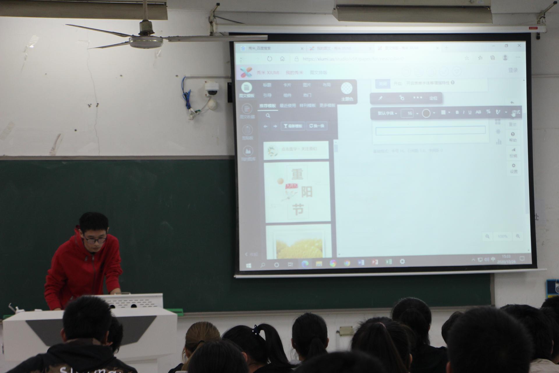 会议伊始,张艺泽同学向全体大一员工会成员普及了做微信公众号推送的注意事项,并强调微信公众号需要传递正确的价值导向,引导同学们积极向上,拼搏进取的生活学习态度。接着,张艺泽同学又向同学们介绍“秀米”,“图怪兽”等软件的使用方法和特别的技巧,让同学们在以后的推送制作过程中更加方便简单,张艺泽讲解之后,同学们受益匪浅。最后,在同学们的阵阵掌声中,会议圆满结束。