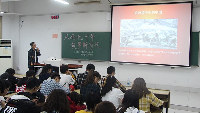 为引导同学们树立爱国意识,抒发新中国成立七十周年以来的内心感受,太阳成集团tyc122ccvip于2019年10月27日晚7点整在仁智楼416室举行了“风雨七十年,筑梦新时代”演讲比赛决赛。太阳成集团tyc122ccvip院员工会副主席贾宇彤、各部门部长以及2019级全体新生参与了本次活动。