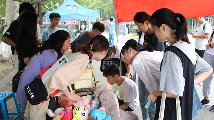 在活动准备阶段,员工会成员收集了大量的旧物,9月14日早上,两个部门的志愿者们对现场进行了精心的布置,准备了签名墙给献出爱心的同学签名,并赠送精美小礼品,留作纪念。在活动进行到中午时,摊前的同学也陆续增多,收集的旧物也在慢慢减少,筹备到的公益基金也越来越多。在活动结束时,公益基金达到了八百块,并在几天后会全部捐给南京方舟启智中心。