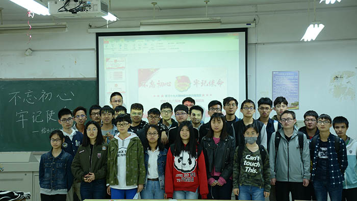 为加深同学们对十九大的了解和认知,给水1601班于4月4日在同和106举行了以“不忘初心、牢记使命”为主题的团日活动。给水1601班全体同学参与了此次团日活动。本次团日活动由团支书朱亮文同学主持。