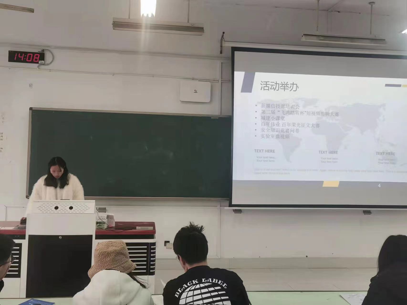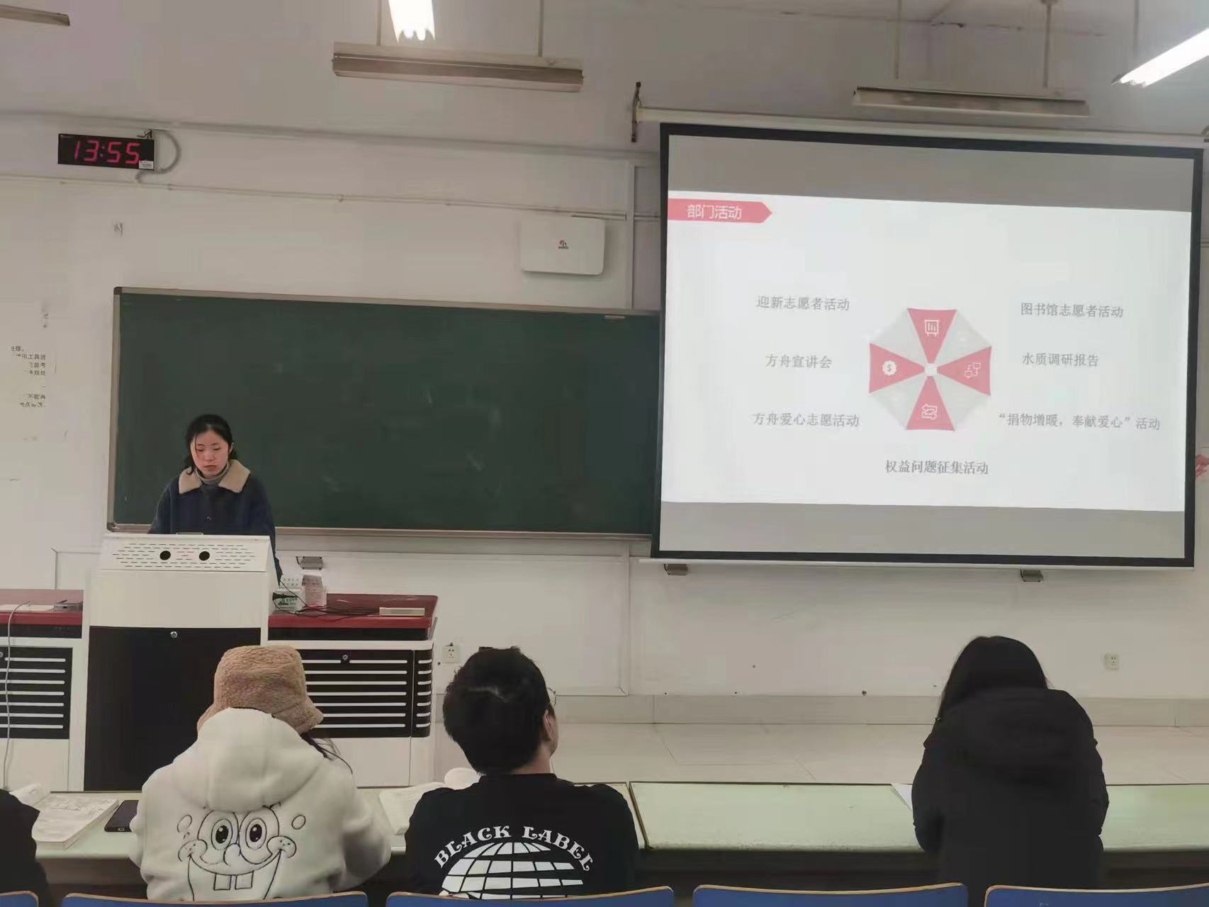 会议伊始,由院员工会主席团成员李煜宇同学介绍会议流程并做员工会学期工作汇报。接着,各部长依次上台对本学期工作及个人表现进行总结与反思,全体与会人员就提高员工会内部联系、扩老员工会活动影响力等方面达成共识。