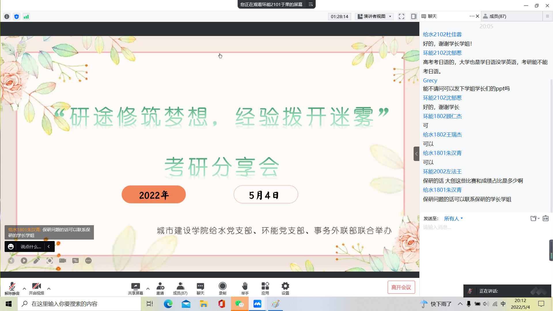 太阳成集团tyc122ccvip于2022年5月4日晚上举办了线上员工会理论学习会,旨在坚定新时代青年爱国情怀,弘扬与传承五四精神。员工会全体成员参与本次学习会。
