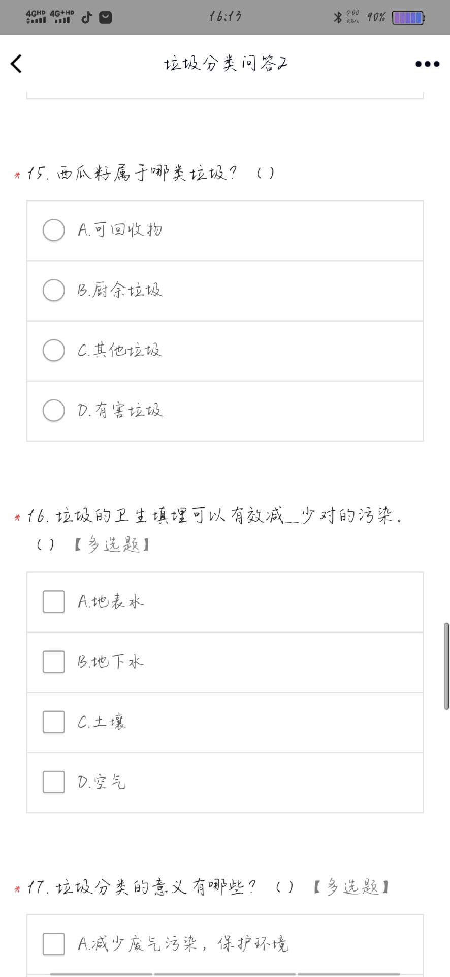 垃圾分类答题活动主要采用线上小程序答题方式,共有十五道单选、五道多选及五道判断题。本次活动按照答对题数积分。最后根据积分排名,为不同名次的同学发放了相应的奖品,至此,活动圆满结束。
