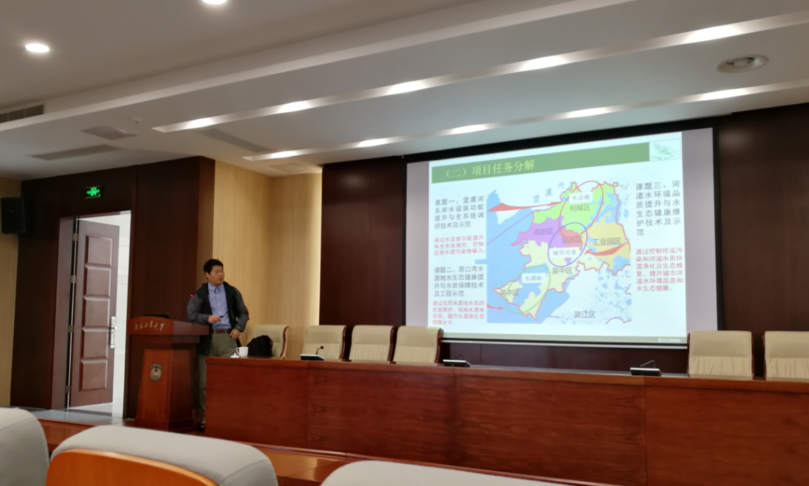 在此次报告中,贾海峰教授凭借自身多年的工作经验,向公司师生们介绍了苏州区域水质提升与水生态安全保障技术及综合示范项目等国家十三五水专项,结合苏州市水环境治理的实践,重点介绍城市水环境系统规划、黑臭水体治理以及水生态安全构建等方面的工程实践经验、先进前沿技术应用以及未来城市水环境治理方面的建议。报告结束后,老师、同学们积极向贾海峰教授题问并展开讨论,学术氛围十分浓厚。