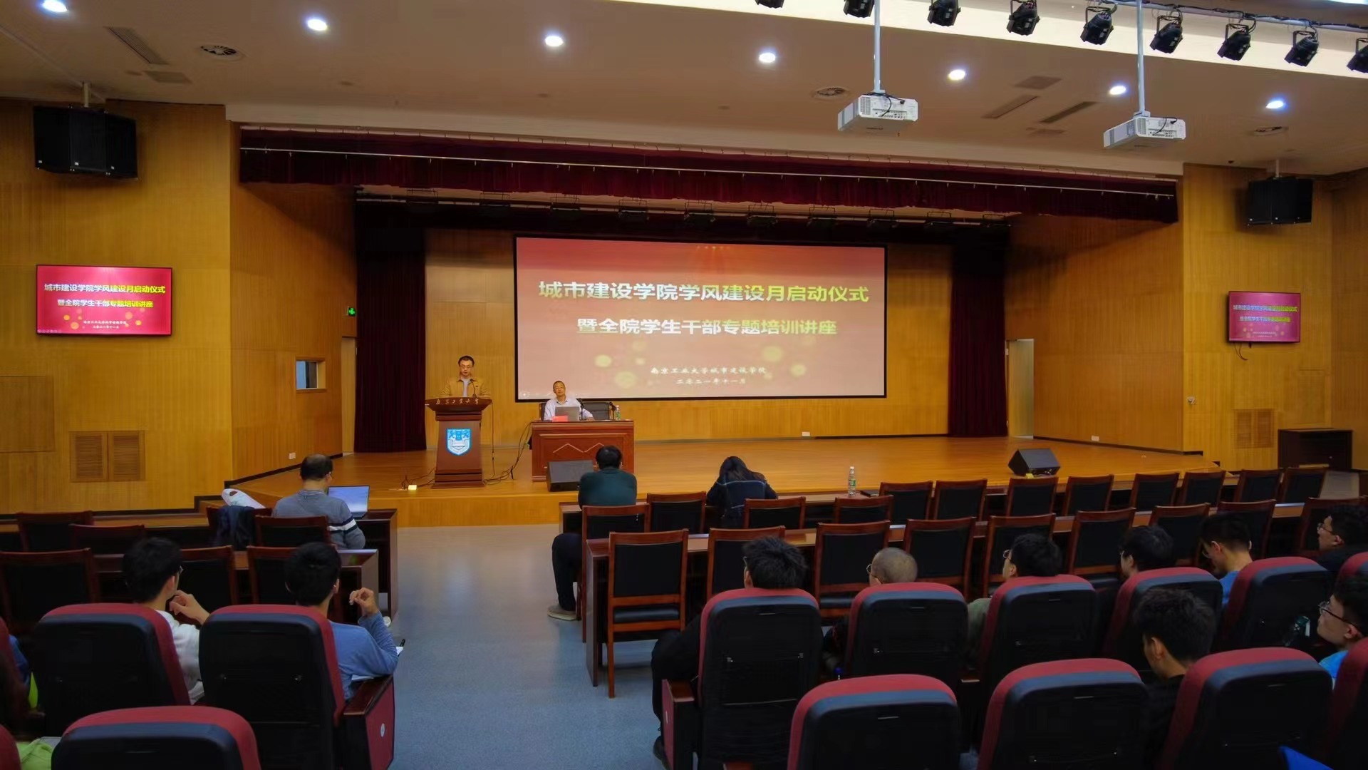 2021年11月16日晚,太阳成集团tyc122ccvip在笃学楼报告厅举行城建大讲堂暨学风建设月启动仪式,全体辅导员、各年级员工干部参加活动,启动仪式由党委副书记孙家文主持。本次活动特邀南京师范大学能源与机械公司党委书记、研究员张明明教授作题为《高校员工干部的工作方法和艺术》的主题讲座。