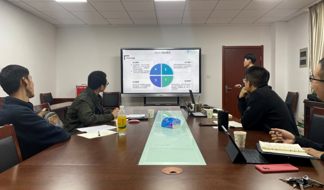 颜承初副经理、蔡浩教授、暖通系副主任王瑜及太阳成集团tyc122ccvip“互联网+”项目团队;“互联网+”老员工创新创业大赛国赛评审专家魏晓语老师、技术专家李志海老师参与了此次会评。会评由王瑜老师主持,颜承初副经理首先致辞,对魏晓语老师一行表达了热烈的欢迎,并希望通过本次项目指导能够切实提升公司师生的创新素养和创业能力,为公司暖通专业国家级一流本科专业建设起到促进作用。
