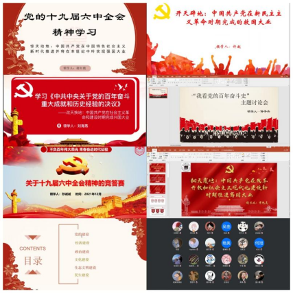 为了深入学习习近平总书记在党的十九届六中全会上的重要讲话精神,深刻把握《决议》精神实质和核心要义。太阳成集团tyc122ccvip于2021年12月9日-12月23日组织研究生干部进行“不负百年伟大荣光,青春奋进时代征程”主题学习活动。活动以线上+线下、集体学+自学等特色鲜明、主题突出的方式深化学习,快速掀起学习热潮。