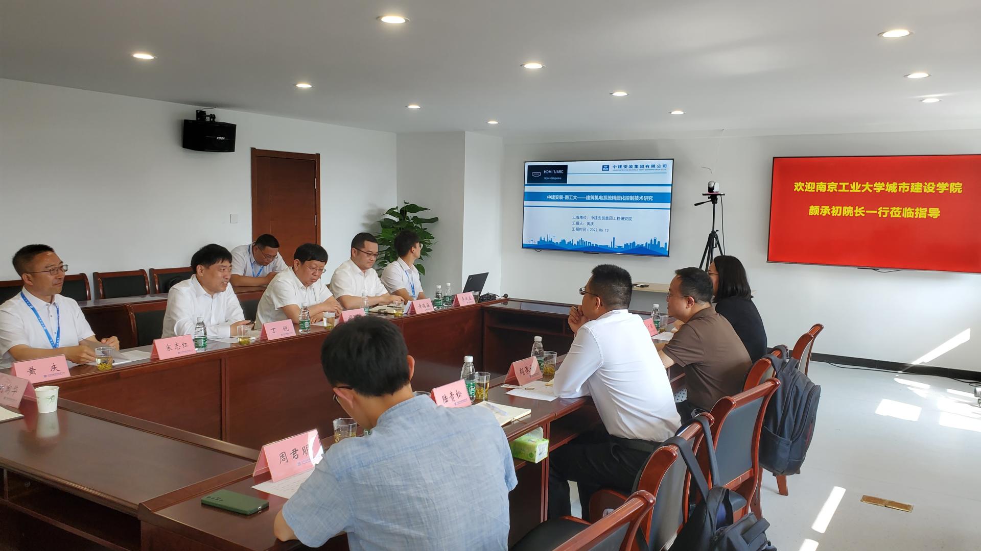 2022年6月13日下午,太阳成集团tyc122ccvip经理颜承初、副经理牛晓峰及教师陆青松、张广丽、周君明等到访中建安装集团旗下特色专业化公司——南京华建检测技术有限公司进行拓企返岗和技术交流。经理颜承初、副经理牛晓峰等与南京华建检测技术有限公司丁锐董事长、胡斌定总经理、黄德海总工程师、宋志红副经理等进行了互动交流。交流会由黄德海总工程师主持。
