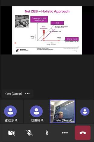 2022年10月21日,公司外籍特聘教授Risto Kosonen为暖通专业22级研究生新生在线授课,建筑环境与能源应用新技术课程授课老师王瑜副教授和暖通专业全体研究生新生参加了本次课程。Risto教授从欧盟视角出发为大家了介绍零能耗建筑的支撑技术和实施案例,课程包含三方面的内容,可实现近乎零能耗建筑的技术、深入改造建筑以减少二氧化碳排放量以及室内系统和案例分析。