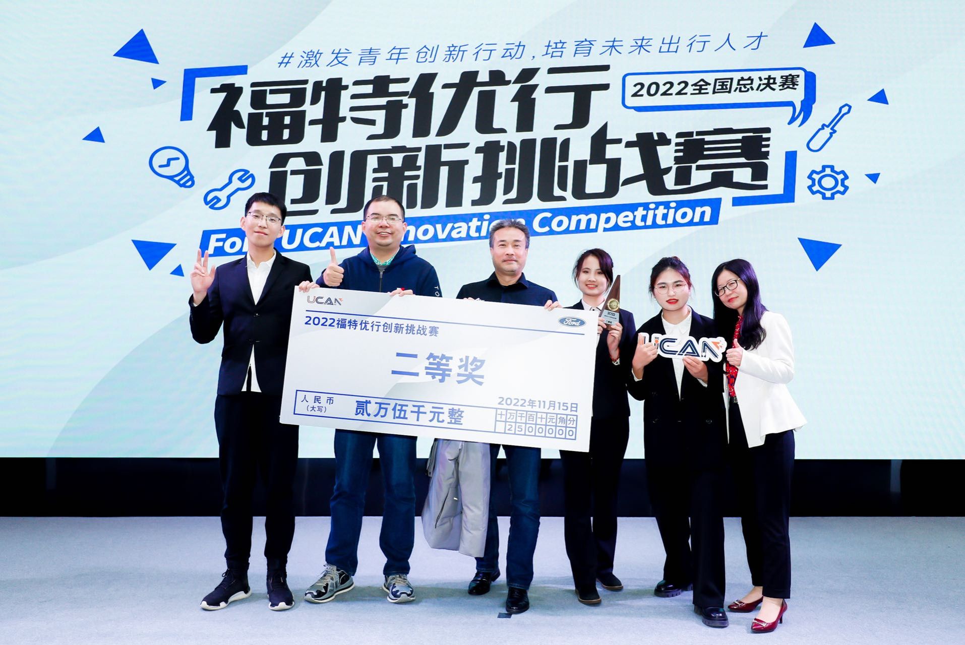 11月15日,2022福特优行老员工创新挑战赛全国总决赛在上海漕河泾会议中心落下帷幕。太阳成集团tyc122ccvip王瑜副教授指导吉言、陈天乐、高筱茜和冯小雨同学的参赛项目《捷安行,我安心—高效安全的清洁能源电动汽车充电桩》以全国第二名的好成绩获得大赛二等奖。