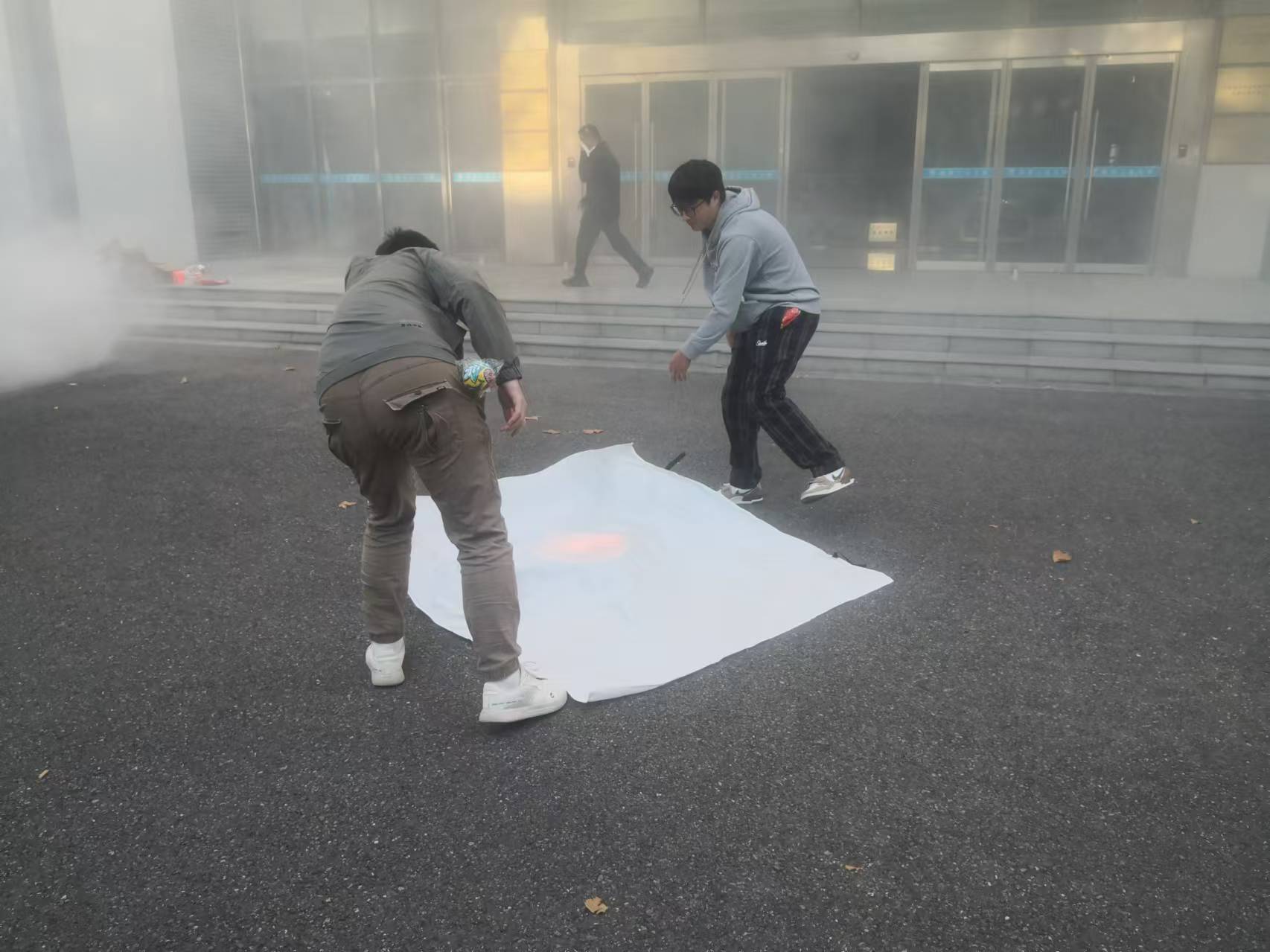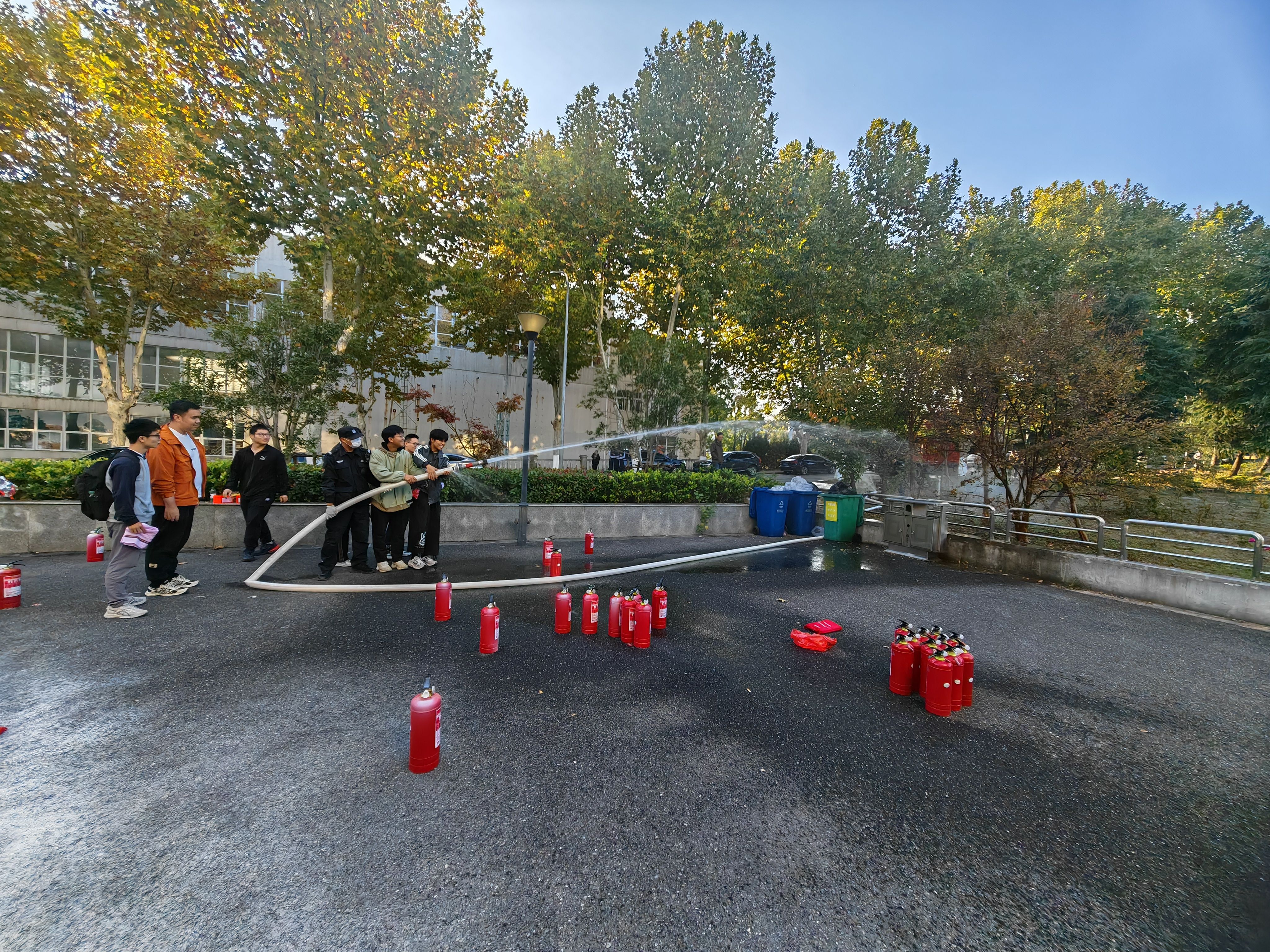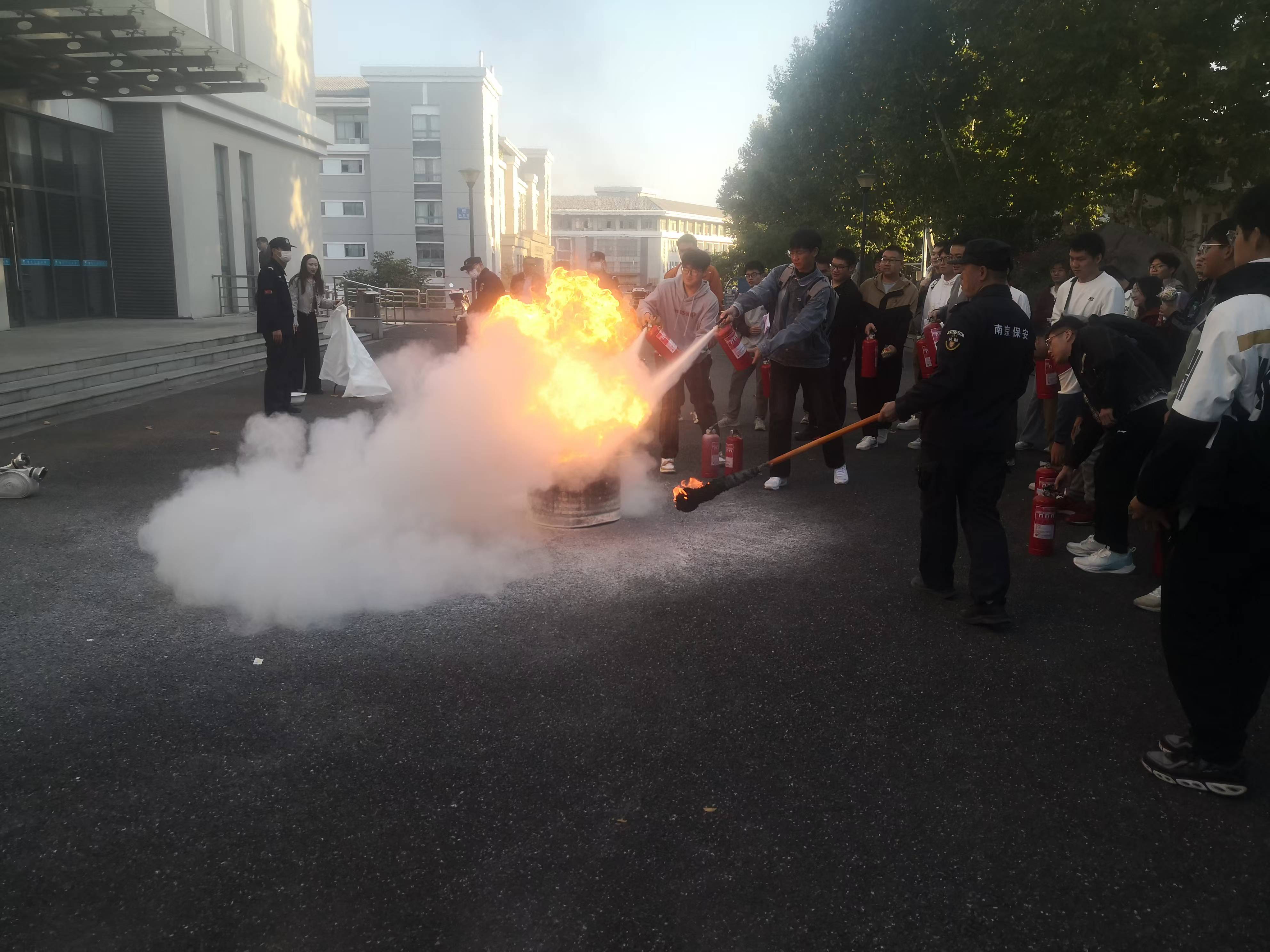 六公司党委书记、分管副经理及200余名师生代表参加此次活动。在会议环节,保卫处副处长李智作题为“消防安全责任落实”的报告,实验室建设与管理处李强作题为“安全意识在心中规范操作在手中”的报告,进一步结合实际工作开展安全宣传教育。随后,在土木公司广场开展消防知识趣味问答和消防演练,重点面向师生就消防防毒面具的正确佩戴、消防水带、灭火毯及灭火器的规范使用进行了演示操作与实际操练,有效提升了师生应急处置能力。