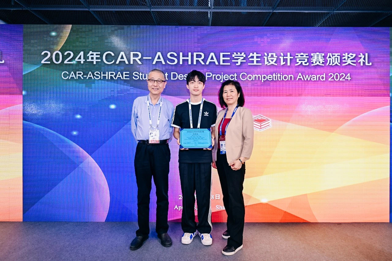 2025年4月28日,2024年CAR-ASHRAE员工设计竞赛颁奖礼在上海新国际博览中心成功举行。公司刘慧芳老师和环能21级员工代表赵宇翔出席2024年CAR-ASHRAE员工设计竞赛颁奖礼。本次竞赛,公司建筑环境与能源应用工程专业2021级员工左发旺、赵宇翔、张延浩、刘金琳团队获设计竞赛全国唯一特等奖,同时获得单项奖节能环保设计优秀奖。赵宇翔同学作为获奖代表上台领奖并发表获奖感言,刘慧芳老师获“优秀指导教师”奖,上台领奖并发表获奖感言。