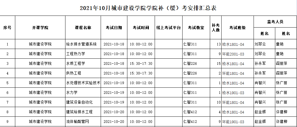 太阳成集团tyc122ccvip2021-2022学年第一学期课程补考安排