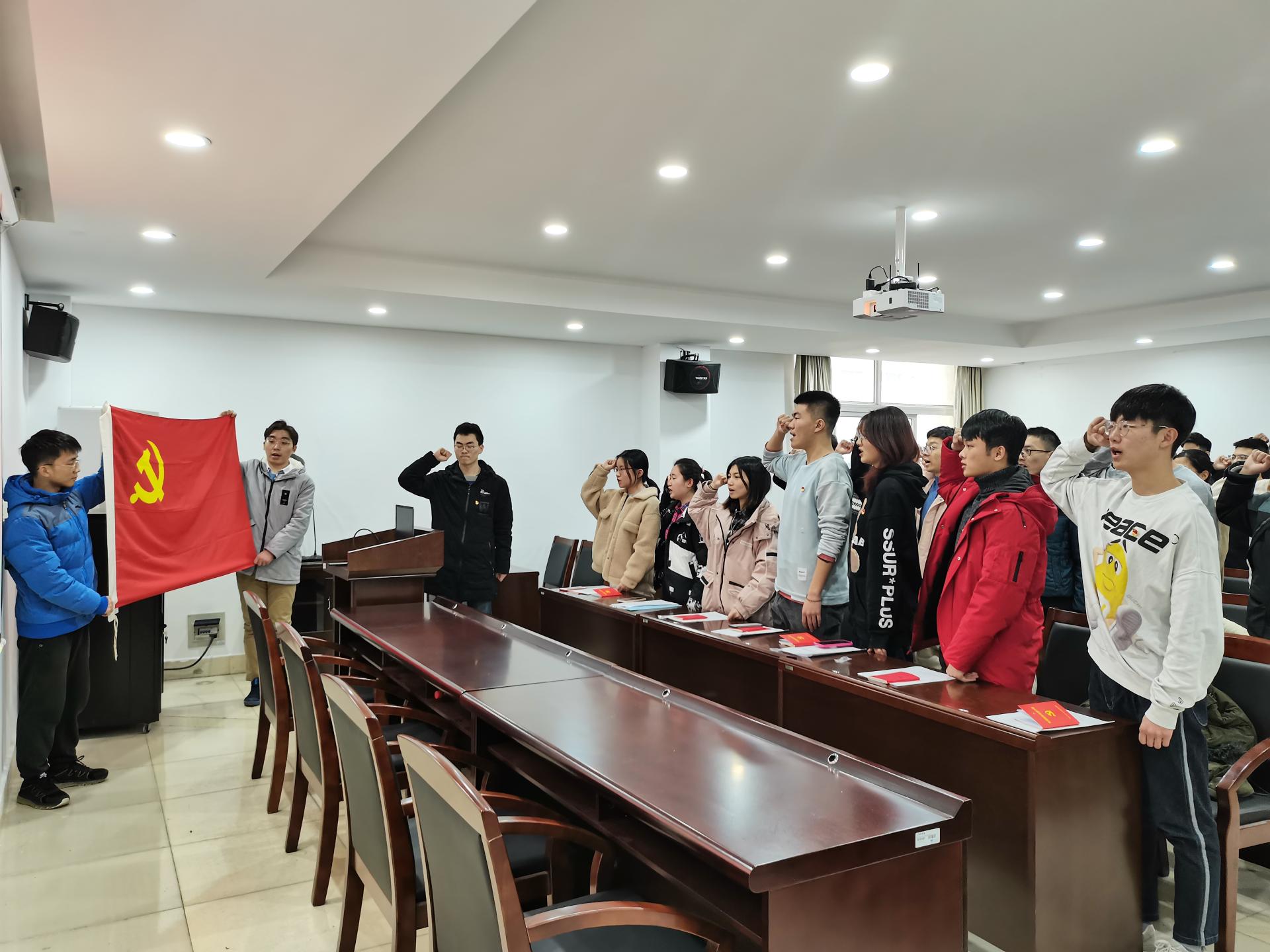 2020年1月6日下午,太阳成集团tyc122ccvip党委为2020年12月28日新发展员工党员举行庄严的入党宣誓仪式。太阳成集团tyc122ccvip组织委员陈薇老师主持,参加仪式的32名新发展员工党员:赵舒睿、夏雨婷、高纪春、高筱茜、戴浩、吕禧星、顾仁杰、武乐、王禹淇、毛晨楠、莫艳、张怡琳、张德哲、齐赛月、蒲明君、王若璇、沈炜、王瑞杰、张昊、贾宇彤、庄子孟、王诗绮、杨璠、路子豪、王翔、许越、姜泳昊、武冰洋、焦博森、于悦龙、蒋浩然、夏芮峰。