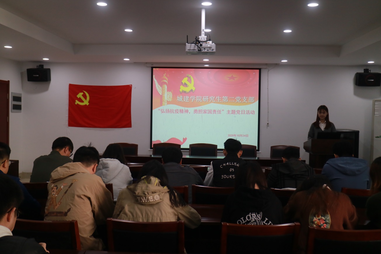 为进一步学习和弘扬伟大抗疫精神,号召青年党员充分发挥先锋模范作用,勇担家国责任。太阳成集团tyc122ccvip研究生第二党支部于10月24日举办了“弘扬抗疫精神,勇担家国责任”主题党日活动。