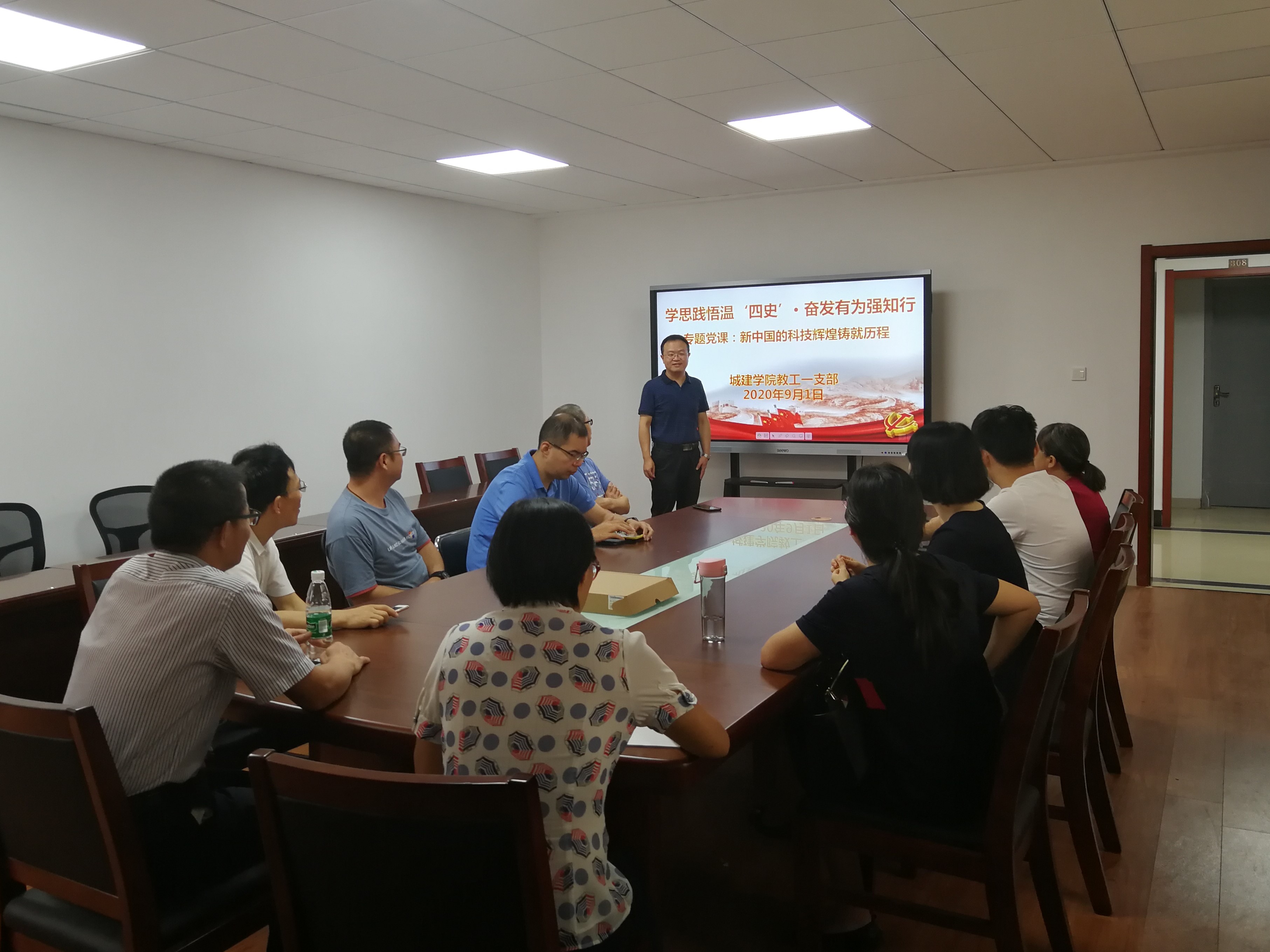 2020年9月1日上午,太阳成集团tyc122ccvip教工一支部举行了学思践悟温‘四史’·奋发有为强知行”主题教育活动,由支部书记、副经理牛晓峰同志给支部党员讲授“新中国的科技辉煌铸就历程”专题党课。