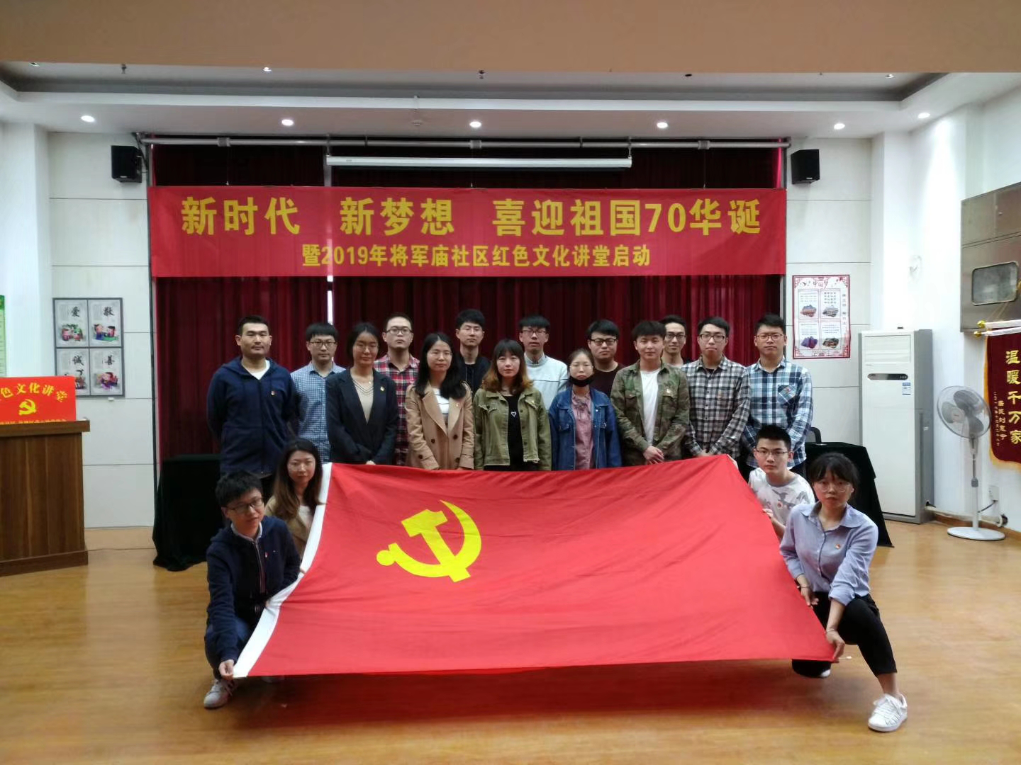 为庆祝中华人民共和国成立 70 周年、在青少年员工中广泛普及《中华人民共和国国旗法》,进一步增强青少年员工的爱国热情和民族自豪感。4月23日下午,太阳成集团tyc122ccvip研究生第一党支部和将军庙社区在社区活动室共同开展了红色文化讲堂系列活动——“五星红旗高高飘扬”暨庆祝新中国成立七十周年。