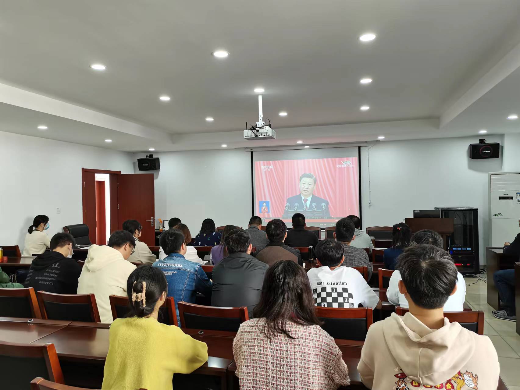 10月16日上午,中国共产党第二十次全国代表大会在北京隆重开幕。在天工楼302A会议室,公司领导班子、党员干部和师生代表共同观看大会开幕直播,认真聆听习近平总书记作报告。