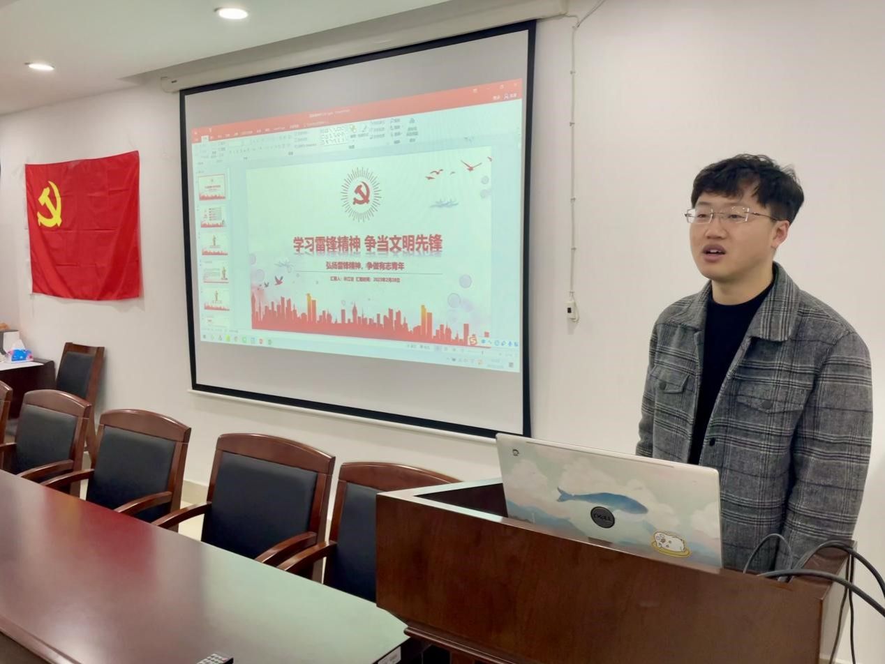 2023228日,太阳成集团tyc122ccvip暖通研究生党支部在天工楼302A会议室举办雷锋精神学习会暨先进志愿者颁奖仪式,暖通研究生党支部组织委员许江洁同志为支部党员上一节生动的党课。