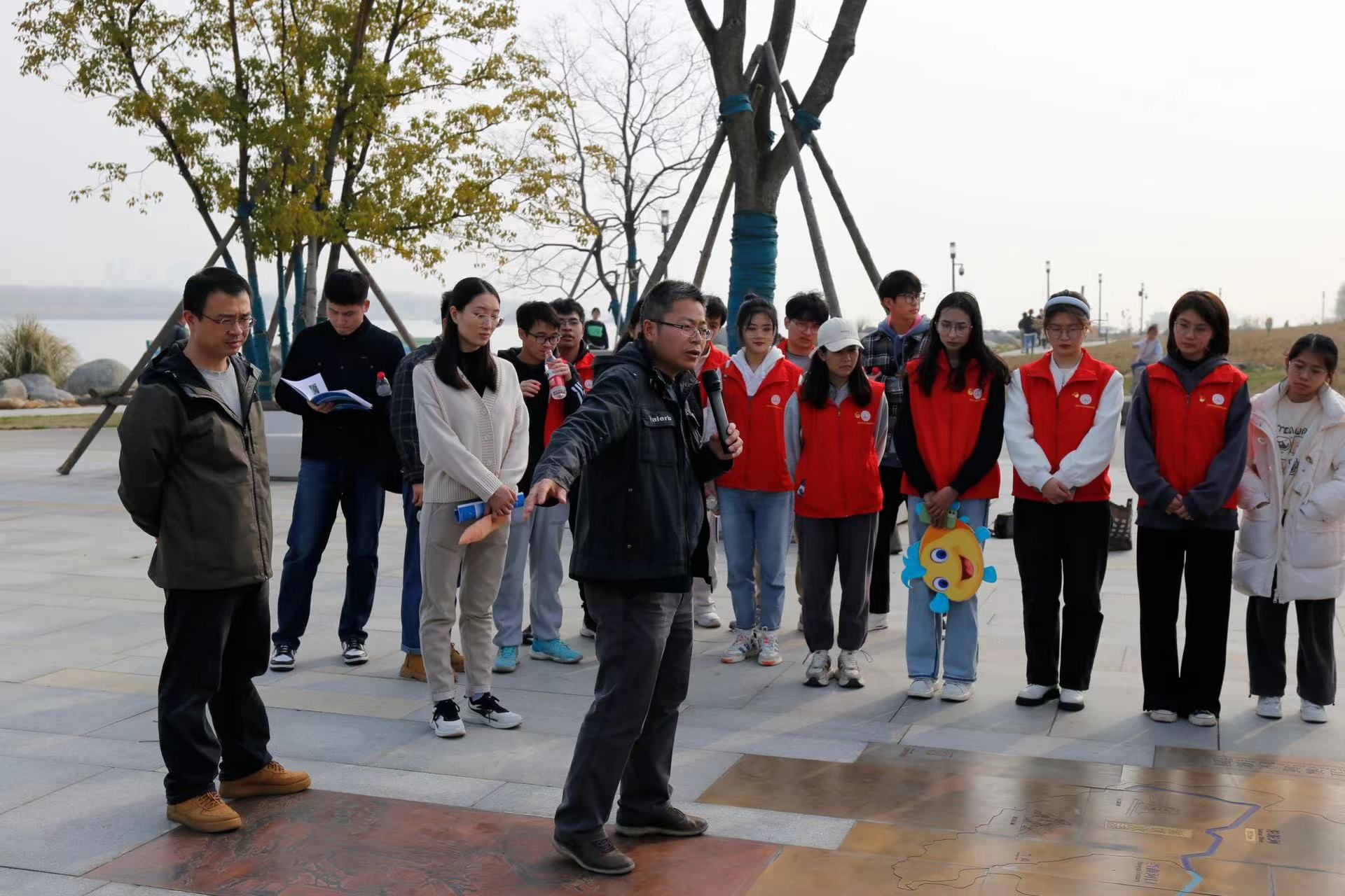 启动仪式上,江北建设党总支书记陈廷柱致辞,对院企合作合作和活动的开展表示祝贺,呼吁大家为城市文明、生态环境、保护母亲河作出贡献。公司党委副书记孙家文赞誉江北建设对建设美好生态家园所做的贡献,引导同学们践行雷锋精神,并对院企双方在党建、科研业务、人才培养等方面的深度合作充满期待。员工党员代表凌梓健带领志愿者学习雷锋精神,呼吁志愿者们用实际行动让雷锋精神在新时代绽放更加璀璨的光芒。夏霆教授带领志愿者们在长江文化印象广场深入学习长江长江水系文化及长江流域的生态环境保护工作,并在现场深入带领志愿者们分组开展长江水生生物、湿地保护以及水体净化、垃圾处理等环保科普宣传,滨江岸线拣拾垃圾等环保实践。