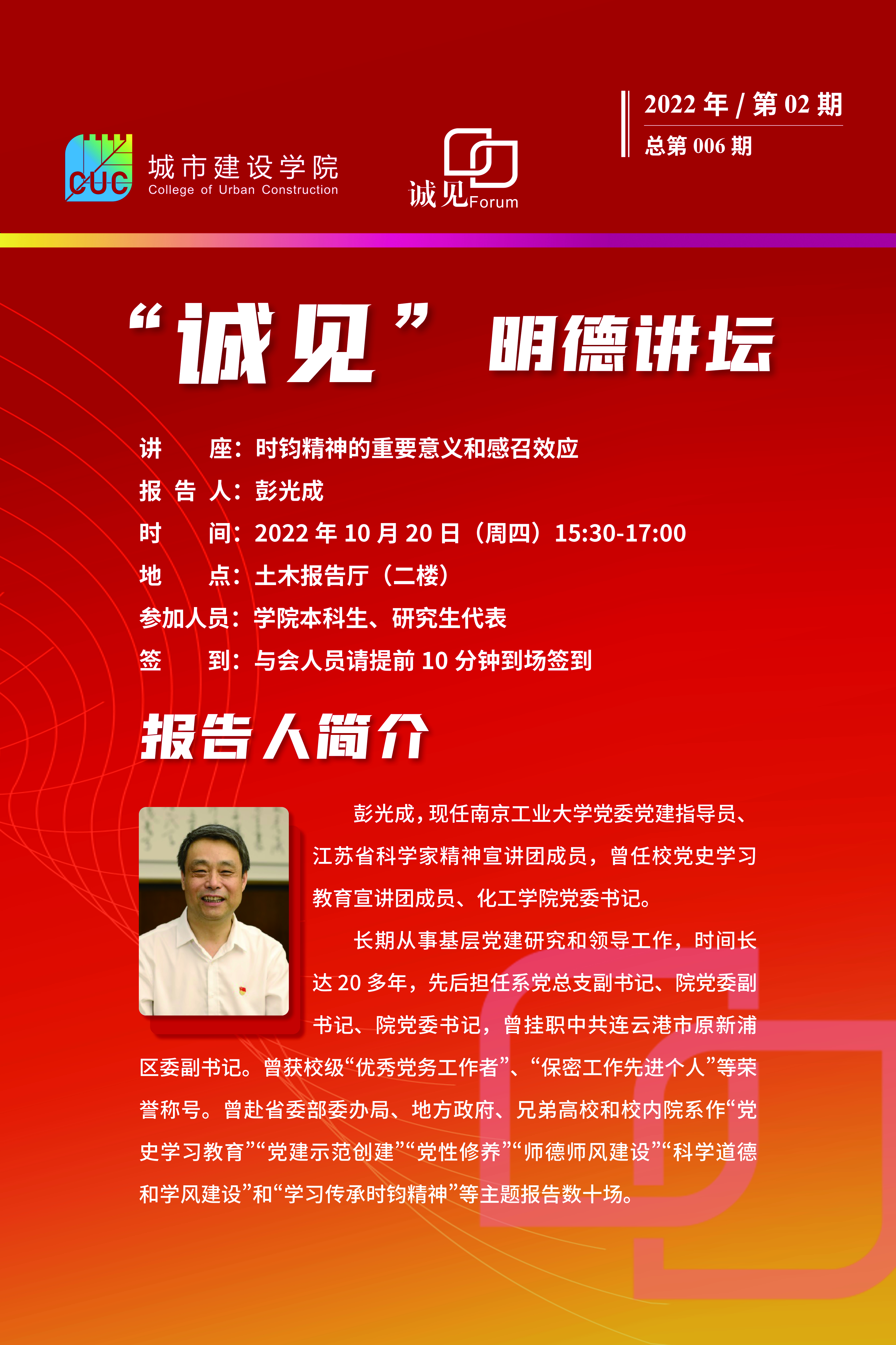 (总第006期) “诚见”明德讲堂-明德讲坛(第002期)-时钧精神的重要意义和感召效应-彭光成